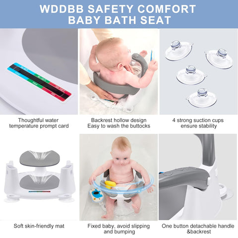 - Equipped with 4 strong safety suction cups, this baby bath seat prevents sideways movement and choking hazards, providing a secure and stable bath experience for your toddler in the bathtub.