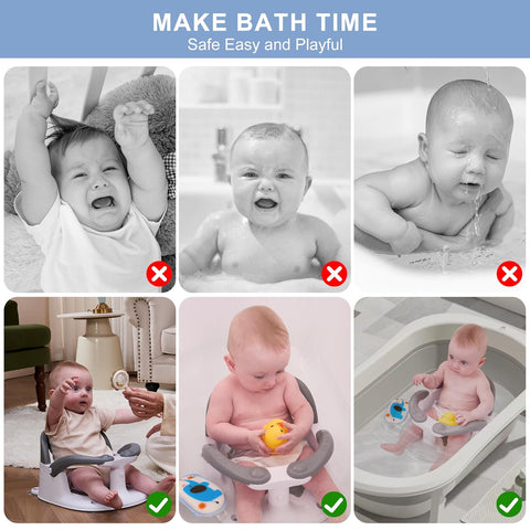 - Designed for babies 6-18 months, this baby bath seat provides 360° stability, ensuring a safe and comfortable sitting bath while freeing the mother's hands. Perfect for the tub, it supports babies during bath time effortlessly.