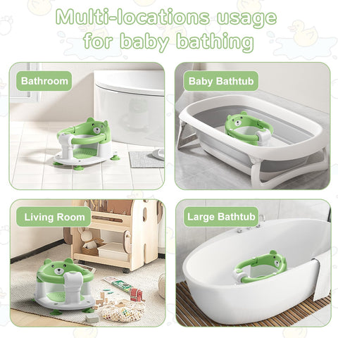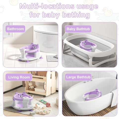 • Are you a mom searching for that one essential item that can transform your baby's bathing routine? Your search ends here with our must have baby bath seat! This sitting up baby bath seat is made of eco- friendly PP+TPR material that is gentle on the skin and easy to clean. It is CPSC certified for safety. The all around protection design prevents your child from slipping or tipping over while enjoying the bath.